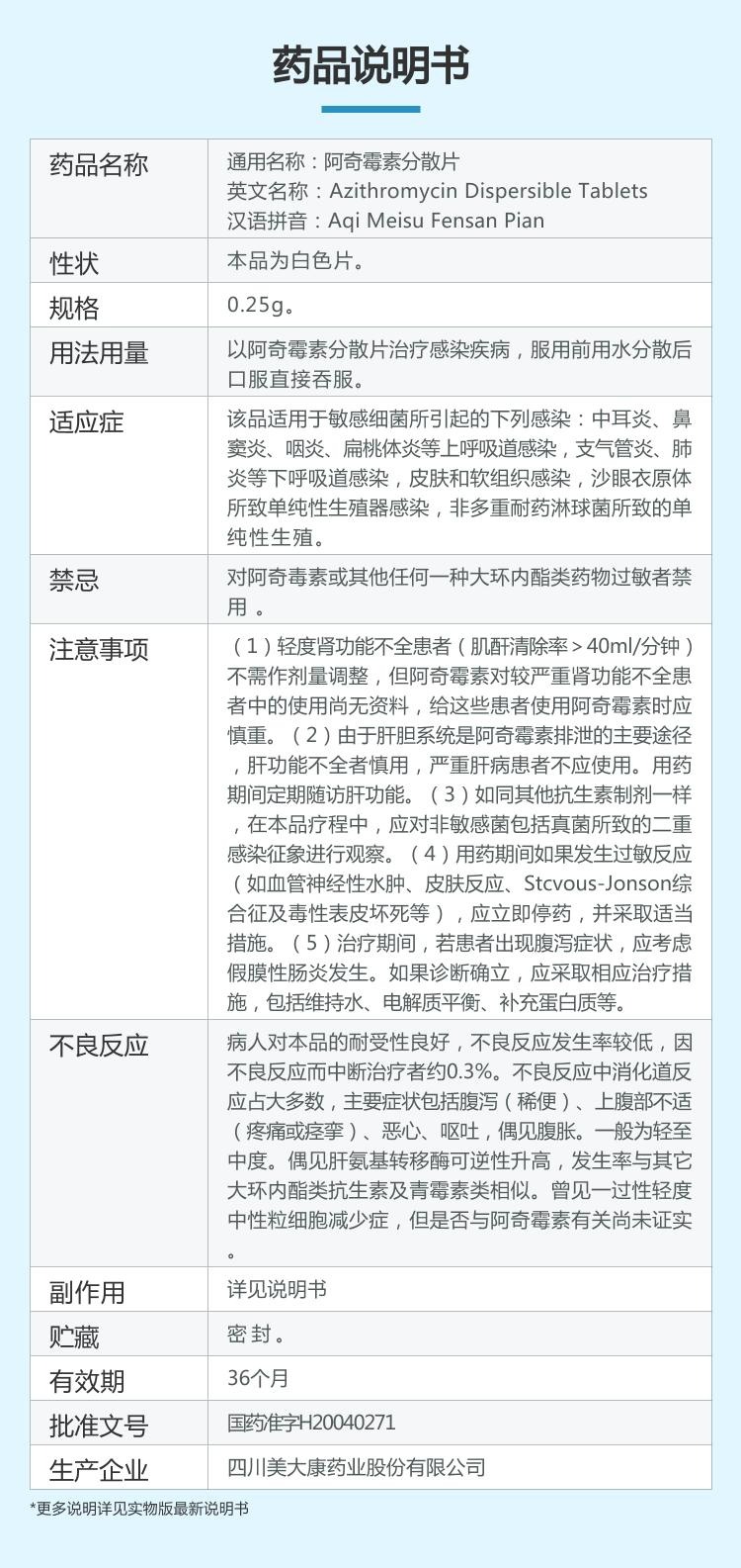 羙大康 阿奇霉素分散片