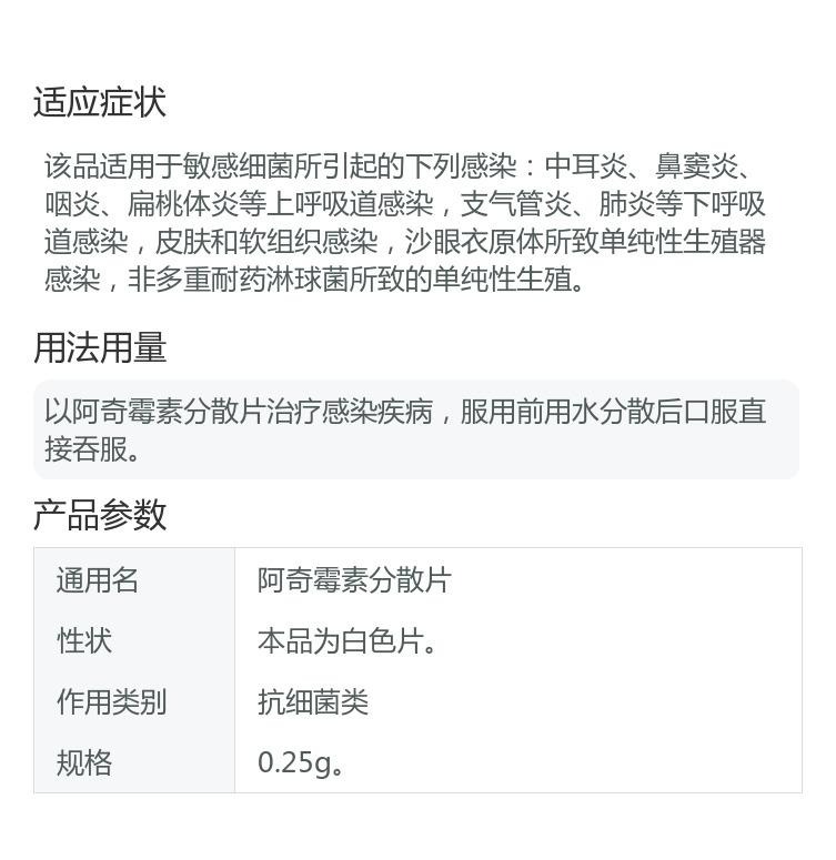功能主治:沙眼衣原体所致单纯性生殖器感染;非多重耐药淋球菌所致的单纯性生殖器感染(需排除梅毒螺旋体的合并感染)。
