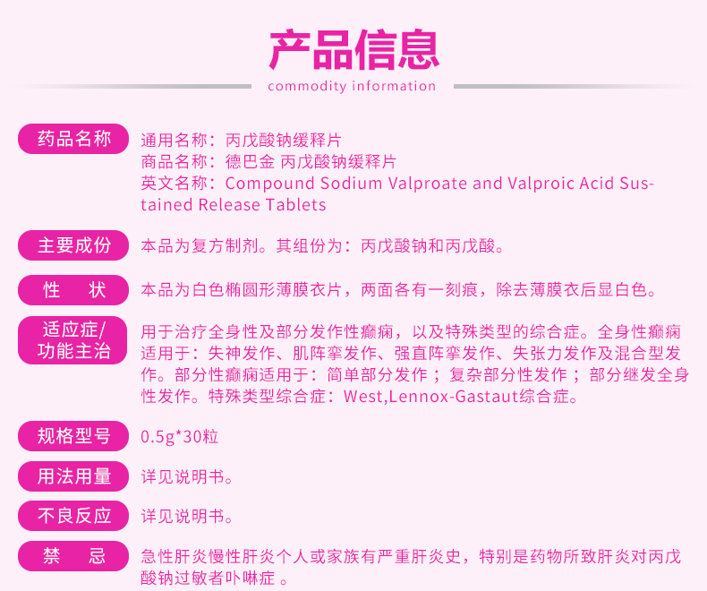 德巴金 丙戊酸钠缓释片(处方)