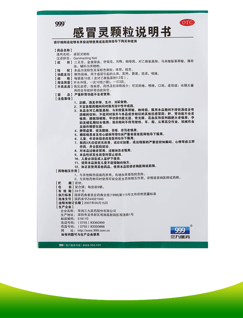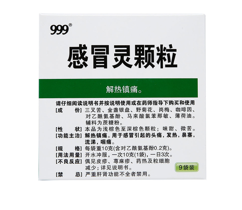 产品名称:999 感冒灵颗粒 10g*9袋/... | 品牌: 999 | 批准文号: 国药准字Z44021940 |