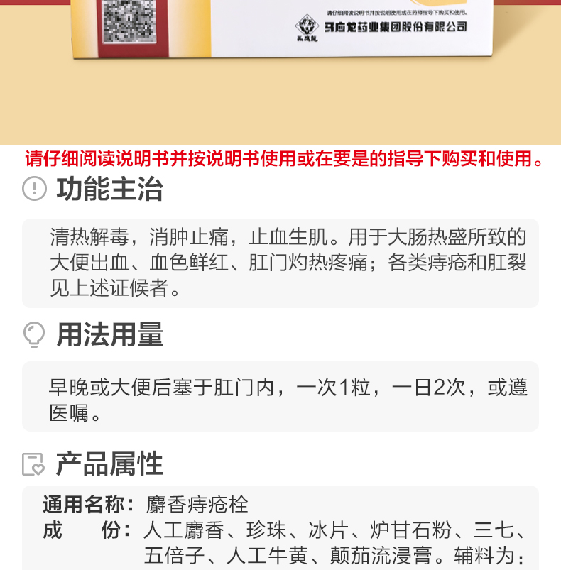 功能主治:清热解毒,消肿止痛,止血生肌。用于大肠热盛所致的大便出血、血色鲜红、肛门灼热疼痛;各类痔疮和肛裂见上述证候者。
